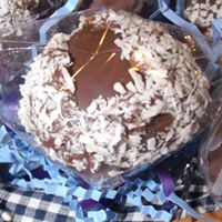 Bite sized German chocolate cake, complete with the pecan coconut experience, dipped in chocolate and rolled in coconut flakes.