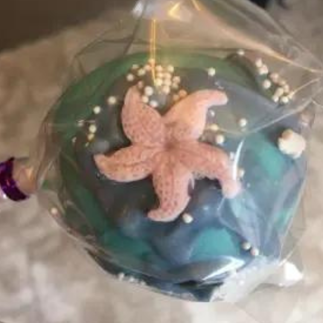 I will dip it in colorful blue swirl chocolate and decorate with shells, pearls, and little fish.